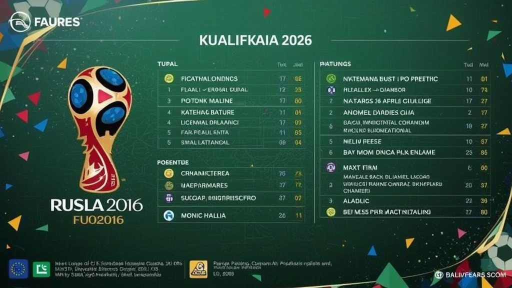 Mengetahui hasil dan klasemen terkini sangat penting untuk mengikuti kemajuan tim kesayangan dalam kualifikasi piala dunia 2026. Saat ini, banyak pertandingan yang telah berlangsung, dan beberapa tim sudah mulai menunjukkan performa yang menjanjikan. Berikut adalah langkah-langkah untuk memantau hasil dan klasemen: